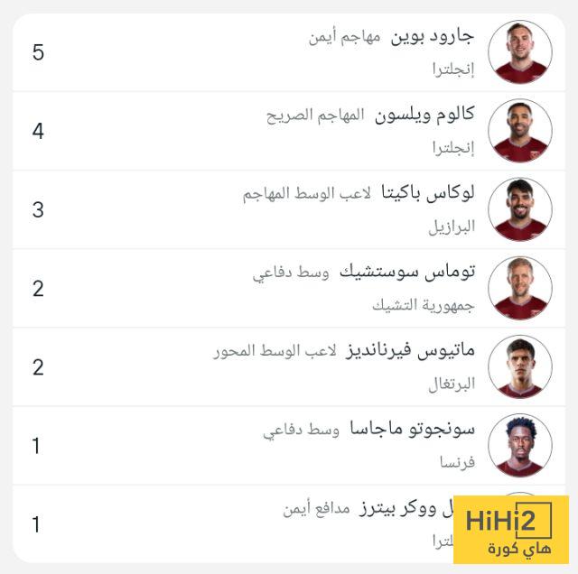 وجاءت قائمة هدافي وست هام كالتالي :